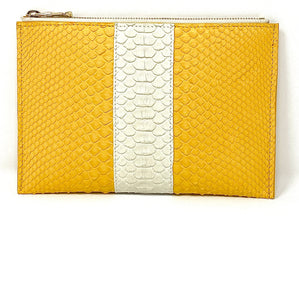 Sophia: Python- Yellow with White Stripe Zipper Clutch w/wristlet