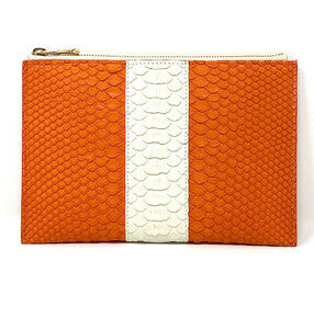 Sophia: Python- Orange with White Stripe Zipper Clutch w/wristlet