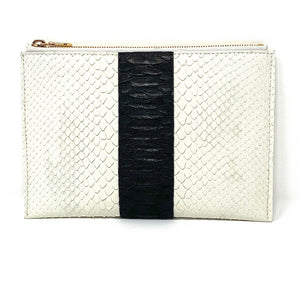 Sophia: White with Black Python Stripe Zipper Clutch w/wrislet