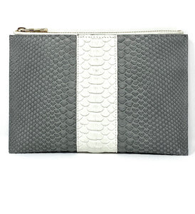 Sophia: Python- Gray With White Stripe Zipper Clutch w/wristlet