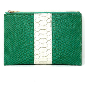 Sophia: Python- Green With White Stripe Zipper Clutch w/wristlet
