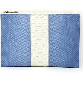 Sophia: Python- Light Blue With White Stripe Zipper Clutch w/wristlet